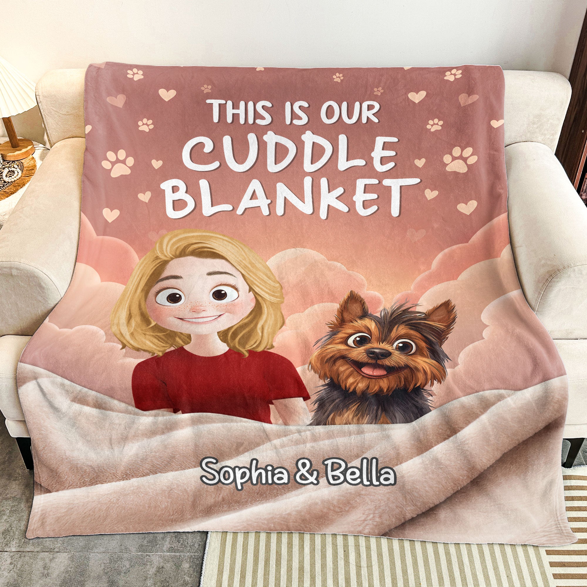 Introducing the perfect bonding tool, “This Is Our Cuddle Blanket” – a personalized blanket that’s perfect for pet lovers, particularly those with a special bond to their dogs and cats. This cozy product establishes a symbol of unity between you and your beloved fluffy friends. Upgrading your cuddling sessions during those chilly nights, watching TV, or even whilst reveling in your favorite book, this blanket isn’t just a blanket, it’s a representation of unforgettable shared moments.